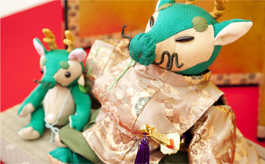 毎年、干支に合わせた新作を作るのが平口さんの慣例。空想上の存在である辰を、親しみ溢れるぬいぐるみに。「ちょっとふんぞり返った姿勢とヒゲのカールがポイントです。」