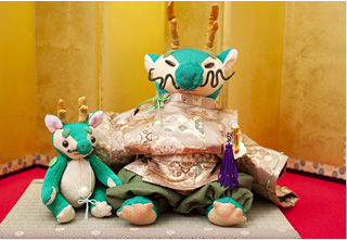 金屏風の前に2体を並べれば、ユニークでおめでたい干支飾りに。