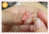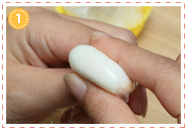 2でできた耳を、シリコンカップの内側に挟み込むようにして、1の顔に押しつけます。