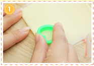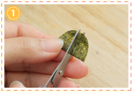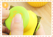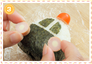 おにぎりの上半分に窓パーツののりを貼りつけます。