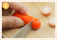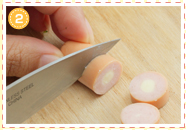 【タイヤ】チーズ入りウィンナーを厚さ5、6mmの輪切りにします。