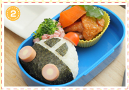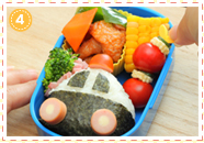 主菜→副菜の順に詰めていきます。かわいいおかずですき間を埋めて。→作り方はコチラ