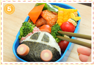 まずはおにぎりを詰めます。