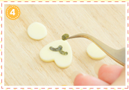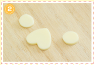 ハート型に抜いたチーズに鼻と口のパーツをのせます。