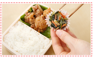市販の冷凍食品には、そのままお弁当箱に入れると食べる頃に解凍されているタイプのものもあります。1品足りないときに便利。
